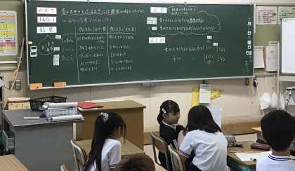 考察でまとめたことを近くの友達と話し合う「あのねタイム」です。