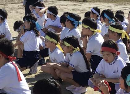 4年生の子たちが走っている間、今度は3年生の子たちが応援をしていました。