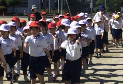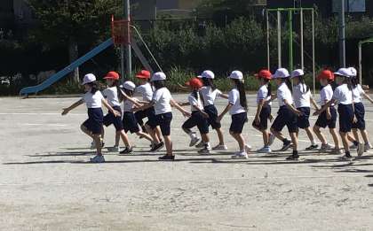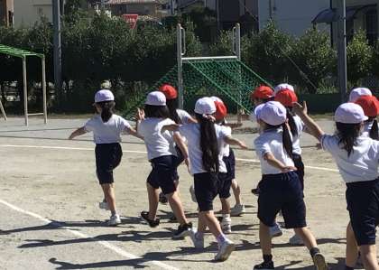 「横の列を揃えよう」「手をしっかりあげよう」との声かけに応えて、頑張っていました。