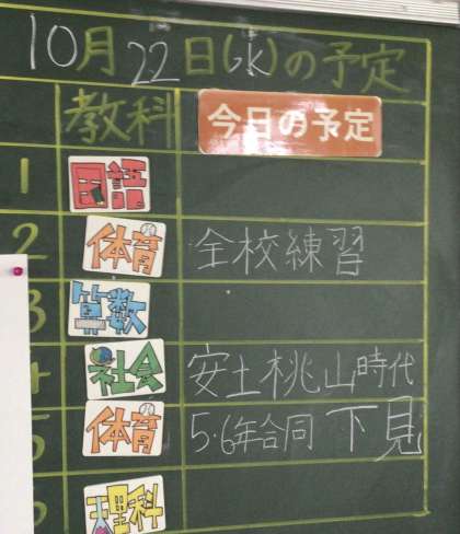 背面黒板は学級閉鎖明けの予定が書かれていました。