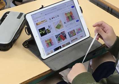 貼り終えた子は「どんなお土産を買おうかな?」とタブレットで調べていました。