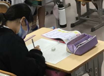 誰も一言もしゃべらず、漢字ドリルの書き取りをしていました。