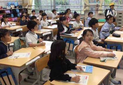 2年1組さん、2組さん、ともに徒競走や玉入れの時の自分の場所をお家の方に知ってもらおうと、紙に書き込んでいました。
