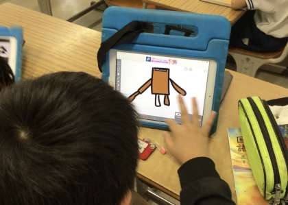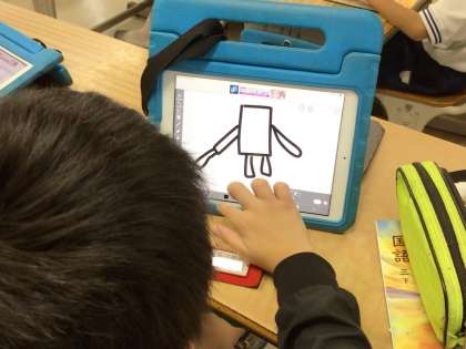 3年1組さんではタブレットのアプリを使って、絵を描いていました。