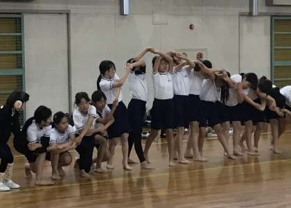 5・6年生の子たち、まだ全員そろってはいませんが、みんなで一緒に演技ができるといいなと思います。