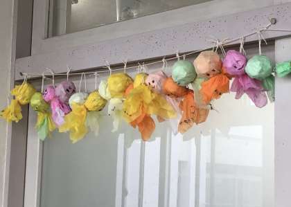 それを受けて、2年生の子たちがてるてる坊主をみんな作りました。