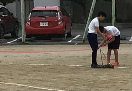 6年生のみんなが残って、明日の運動会に向けての準備を進めてくれています。