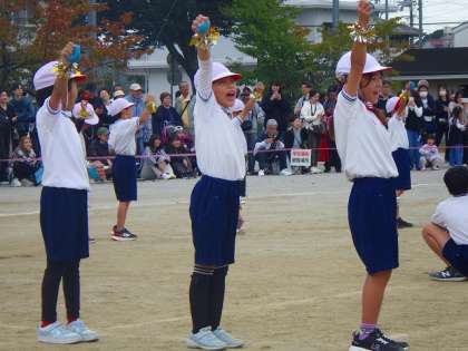 1・2年生、玉入れの様子です