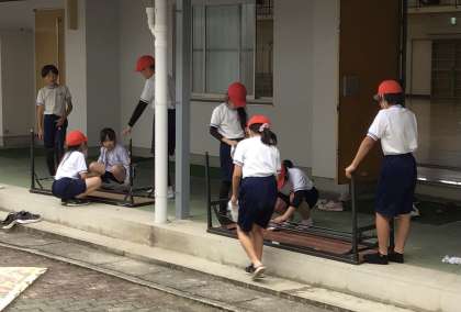 5年生のみんなもテキパキと動く姿が印象的でした。一番上の写真を見てもらえるとわかりますが、5年生の机や椅子を運んだ子たち、砂が体育館に入らないように拭いてくれています。緑の部分が汚れないように靴を脱いで活動してくれています。