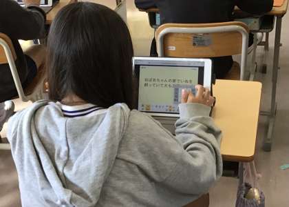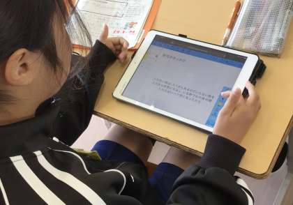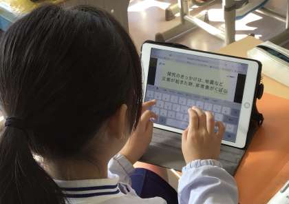5年2組さん、総合的な学習の時間で防災についてワークシートにまとめ中です。