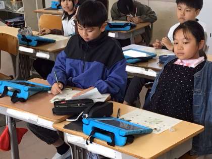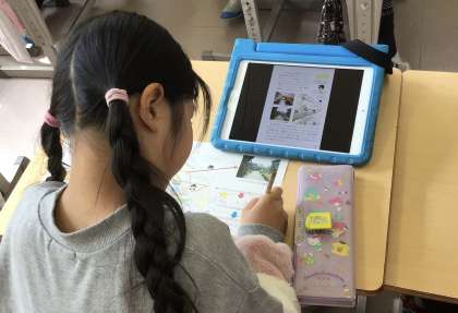 タブレットに入っている副読本「豊田」を見ながら、問題を考えていました。
