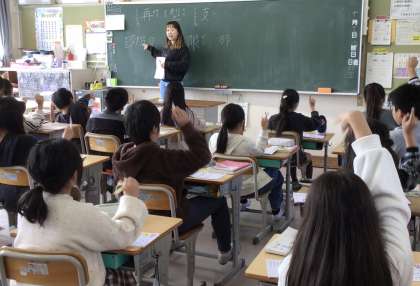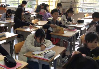 効果の「効」の字と、交わるの「交」の違いを先生に教えてもらっていました。