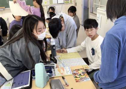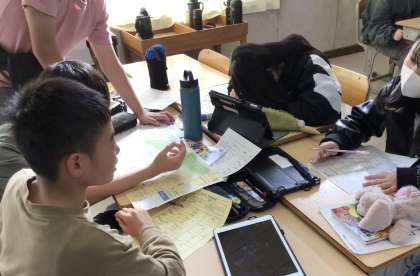 5時間目、6年1組さん、2組さん共に修学旅行について班ごとに話し合い中でした。