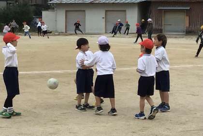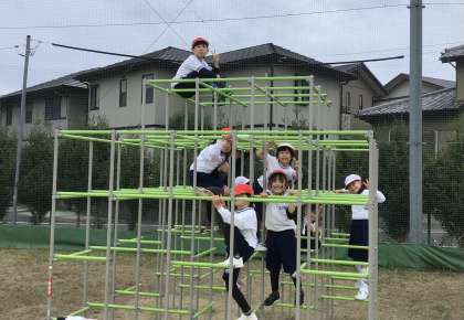 運動場で遊び中