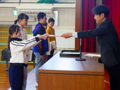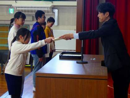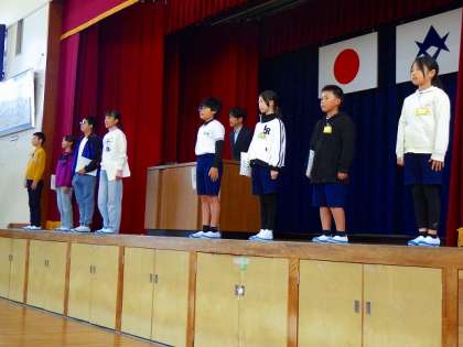 5・6年生の学級委員さん、委員会の委員長さんに任命状を渡しました。