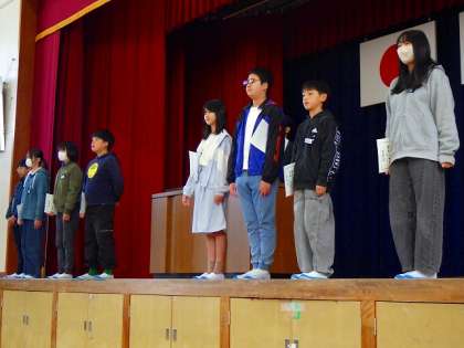 全校の前で話すのは緊張したと思いますが、立派に話すことができました。
