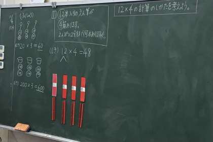 12×4 をどう計算したらよいかを、今までの勉強を生かして、どうやって計算するかを考え中でした。