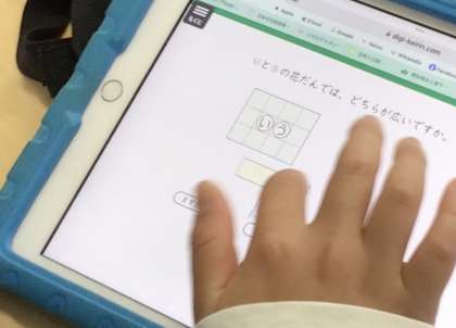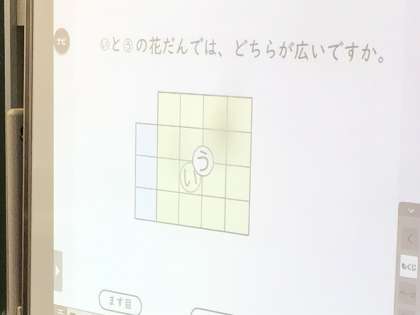 先生がタブレットに図形を準備してくれたので、自分で動かしながら確かめていました。