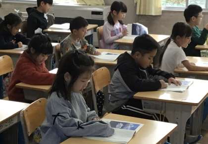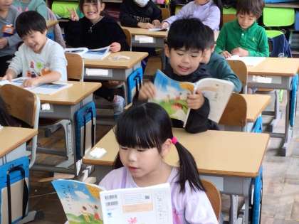 どこを読んでいるかわかるように、指で文字を追いかけながら音読していました。