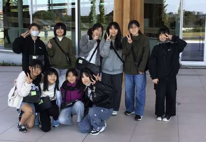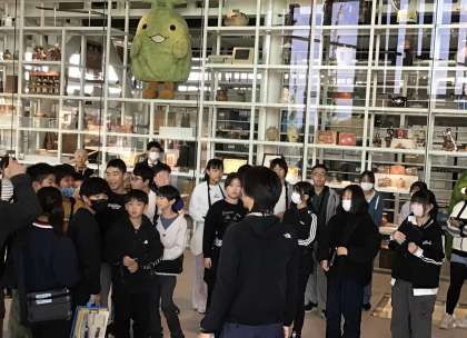 入り口付近で1組の女の子たちが博物館の署員の方のお話を聞きながら、写真を撮っていました。