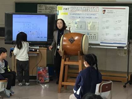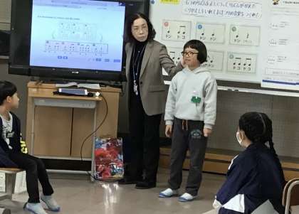 2年1組さん、音楽で「繰り返しを使って音楽を作ろう」を勉強中でした。