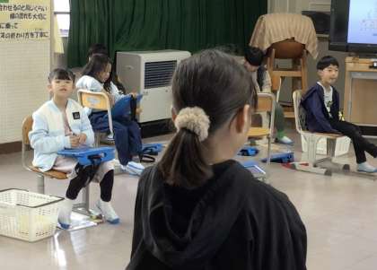 どうして、このリズムにしたのかを説明し、実際に手で叩いてから、みんなも一緒にやってみました。