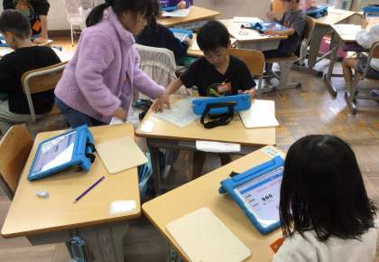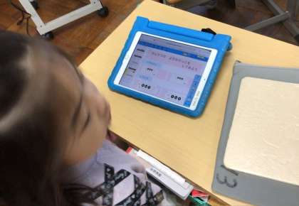 タブレットを使って、リズムを作ります。