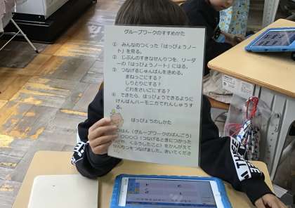 1年1組さん、音楽の授業で「せんりつでよびかけあおう」という勉強をしていました。