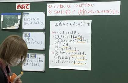 4年生の子は「店員さんらしく、お客さんに丁寧な言葉で話す」ことを目標に頑張りました。