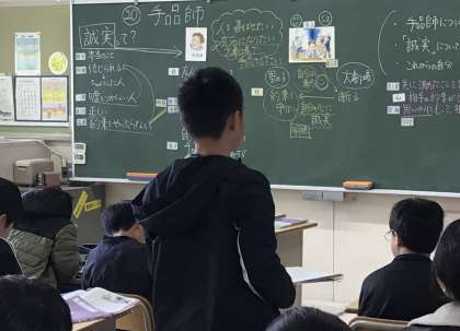 6年1組さん、道徳の「手品師」というお話を通じて、「誠実な心」とは何かを考えました。