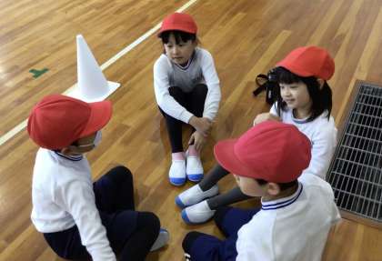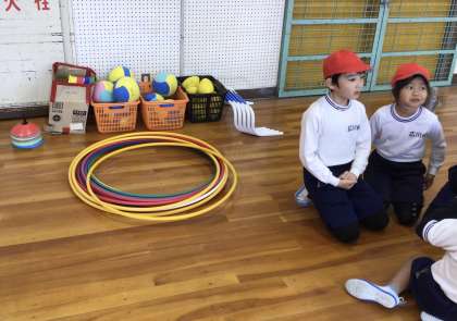 2年1組さん、体育館で体育の授業です。