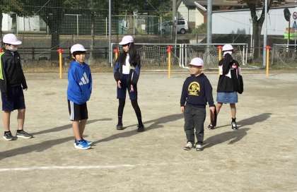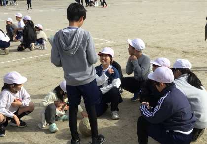 1年生の子がフリスビーを持っていますね。