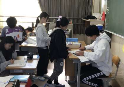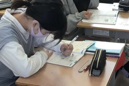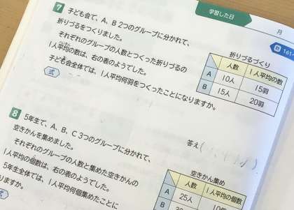 5年1組さん、算数の勉強で空き缶や折り鶴の平均値の勉強をしていました。