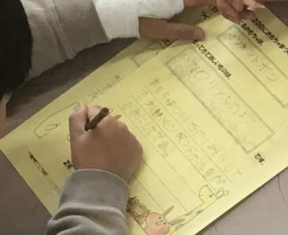 2年生のみんなが11月20日に行う「おもちゃ祭り」に、1年生を招待するための招待状を書いていました。楽しい会になりそうだね。
