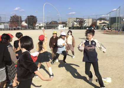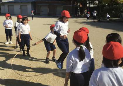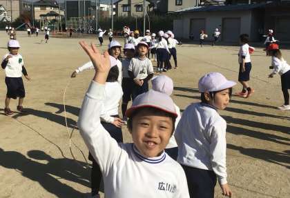 教育相談が終わっている学級は、先生も外に出て、一緒に遊んだり、なが縄を回してあげたりしていました。