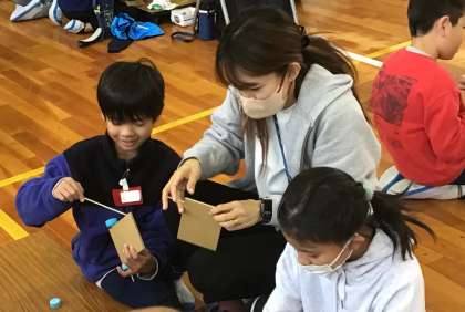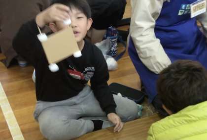 ダンボールと竹ひご、ペットボトルキャップでクルマを作ります。