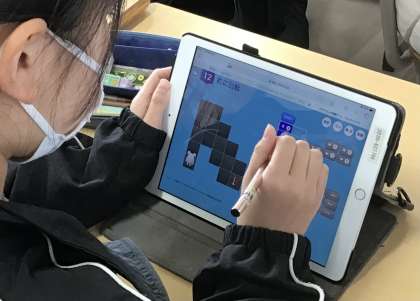 6年1組さん、プログラミングの「アルゴロジック」に挑戦です。