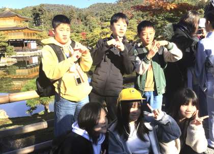 金閣がよく見える写真スポットで班別写真を撮りました。