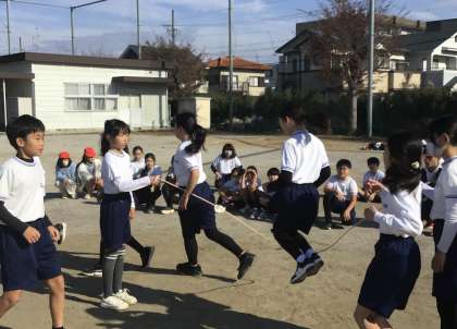 列の最後の子が跳んだ後、先頭の子が跳び始めます。