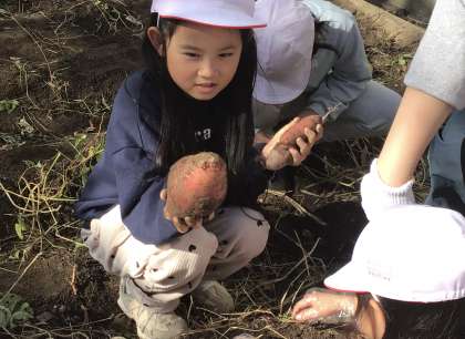 一生懸命掘って、さつまいもをいっぱい運んでいたので、靴や服を汚して帰る子がいるかもしれません。頑張って掘った証なので、「頑張ったね」「どうやって掘ったの?」「どれくらいの大きさのが取れたの?」と言いながら話を聞いてあげてください。