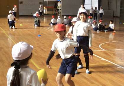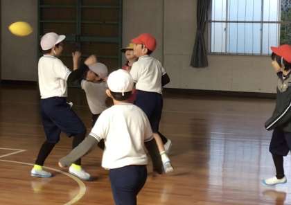 微妙なルールでやっており、ひもなどもついていませんでしたが、ボールを楽しそうに追いかけていました。