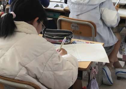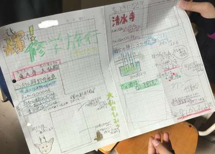 6年1組さん、修学旅行のまとめを作成していました。
