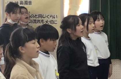 5年2組さん、音楽の授業で「マイバラード」の合唱練習をしていました。