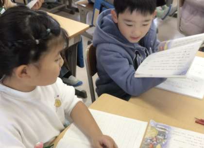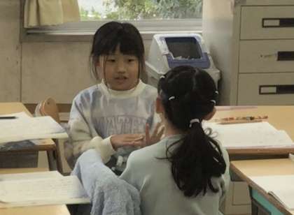 3場面がどんなお話か、隣の子に説明していました。