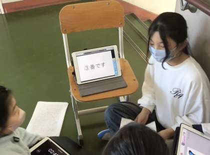 5年1組の子たちが明日の防災の日での発表練習をしていました。