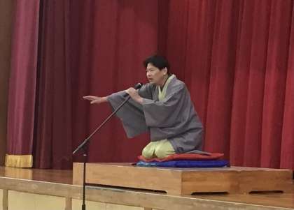 先生から「落語とはお話の芸です。一人の人が座ったまま、いろんな人の役を演じます」とお話がありました。