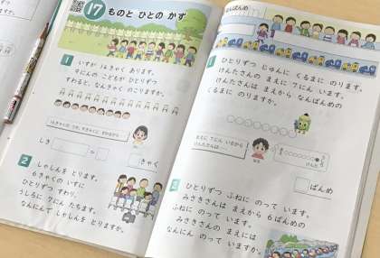 「全部で14脚椅子があります。9人の子が座りました。残り何脚ありますか?」