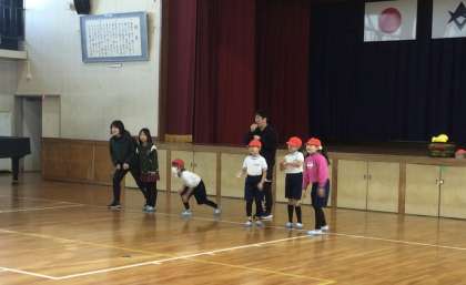 身体を温めるために、鬼ごっこを行います。