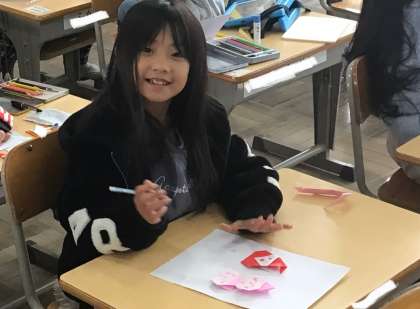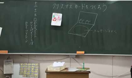 1年2組さん、クリスマスカードを作成中でした。