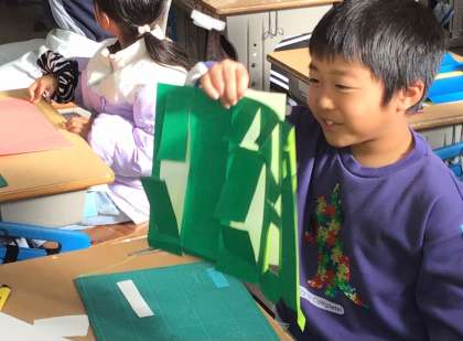 画用紙の内側をくり抜くことになるので、カッターを使います。